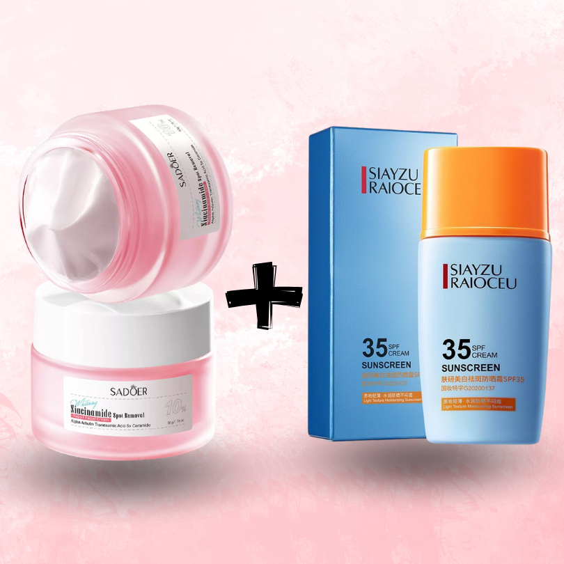 Adquiere la Crema Aclarante SADOER® de 50g, enriquecida con Niacinamida y Vitamina C, y recibe GRATIS un Protector Solar SPF35 de 30g