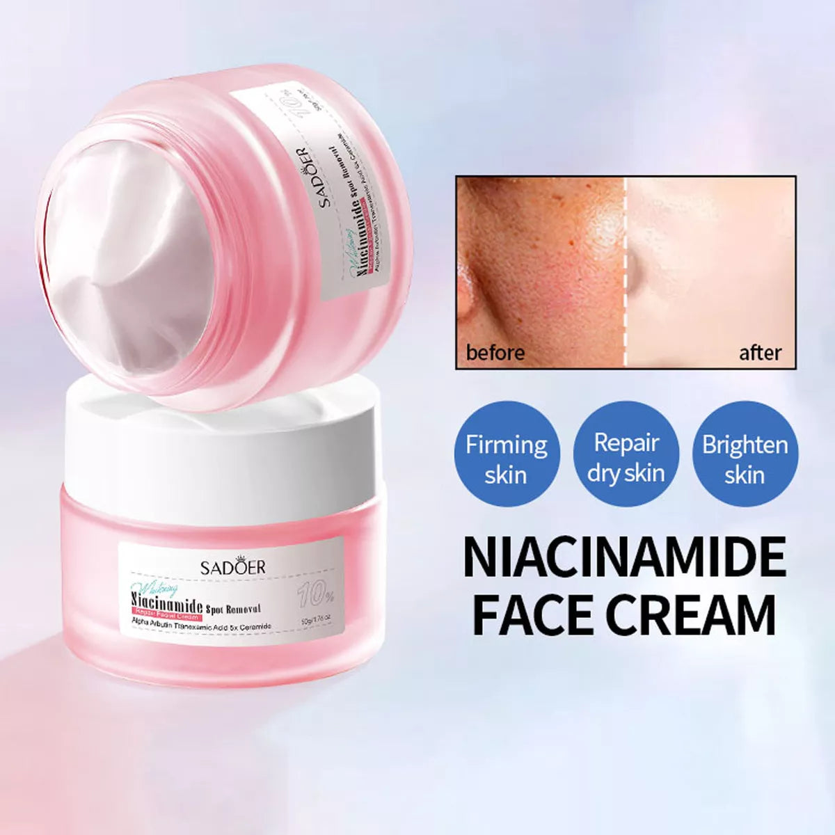 Luce una piel radiante y uniforme con la Crema Aclarante SADOER® con Niacinamida + Protector Solar GRATIS