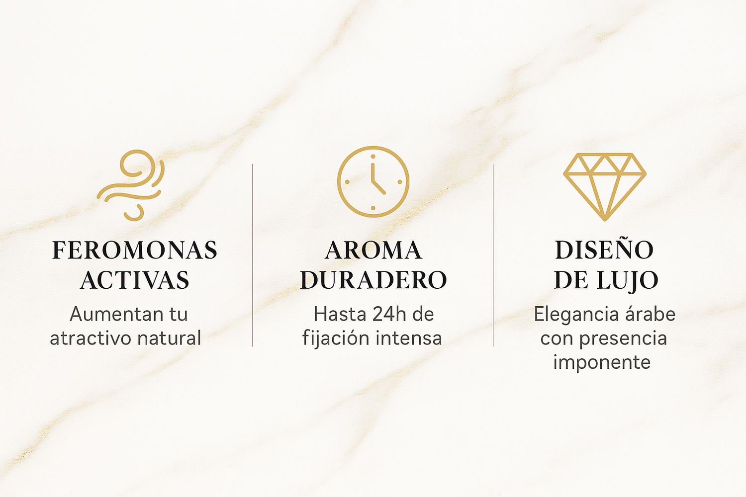A diferencia de otros perfumes con feromonas genéricos, Najah contiene extractos árabes de alta calidad que garantizan mejor fijación, aroma más exclusivo y un empaque digno de lujo.